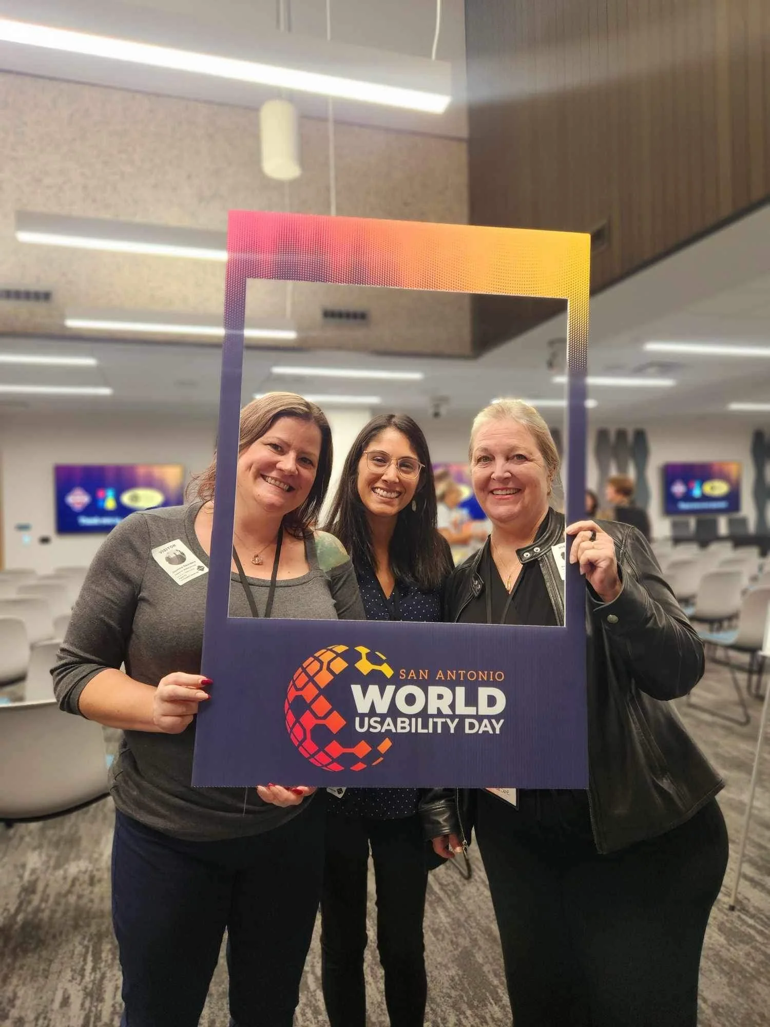 World Usability Day, San Antonio (2024). Pictured with two UX research collaborators I work with on research and design projects focused on improving digital services.